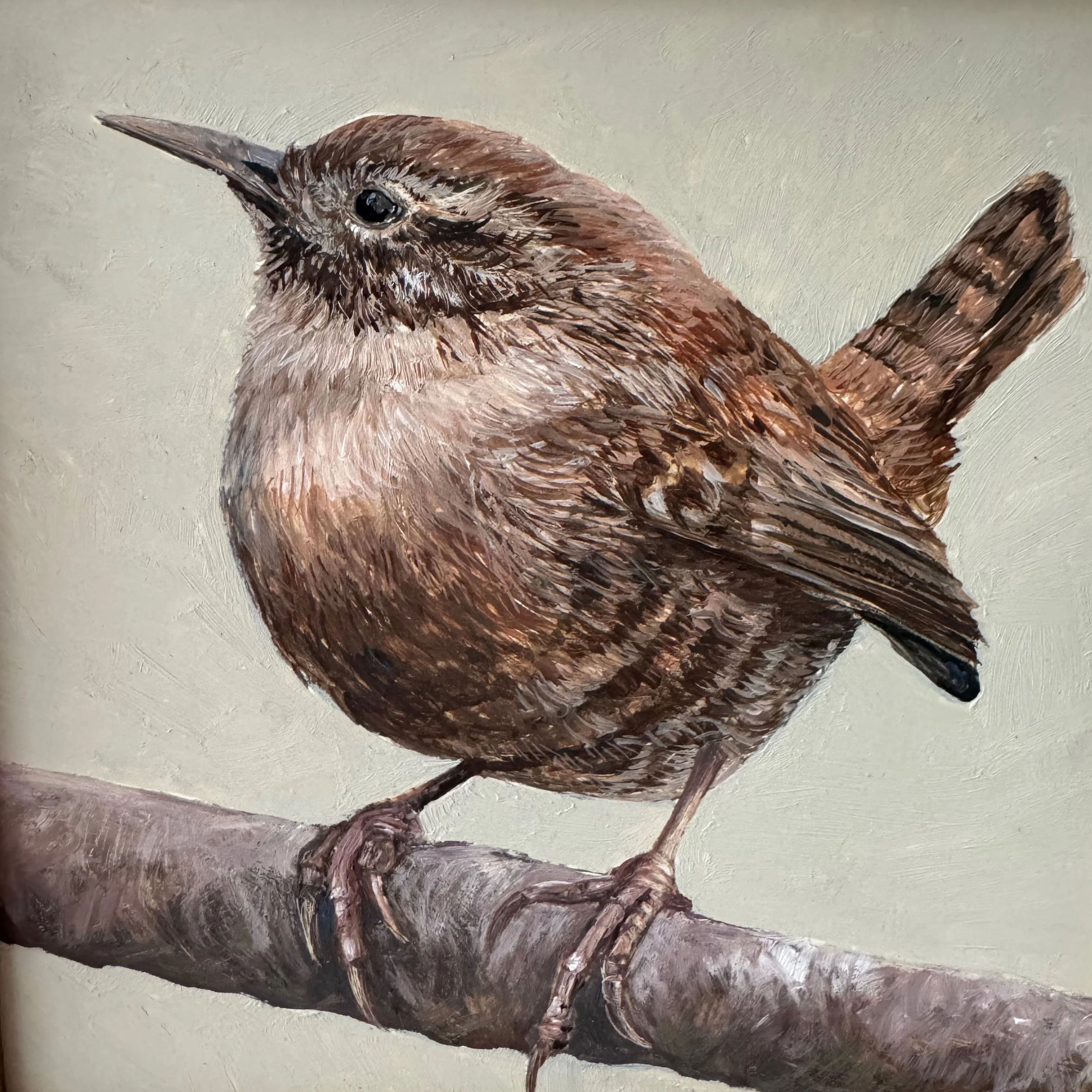 Painting #219, The Wren, 23.5cm x 23.5cm x 2cm deep, Oil on Clay Board, Framed (£300)