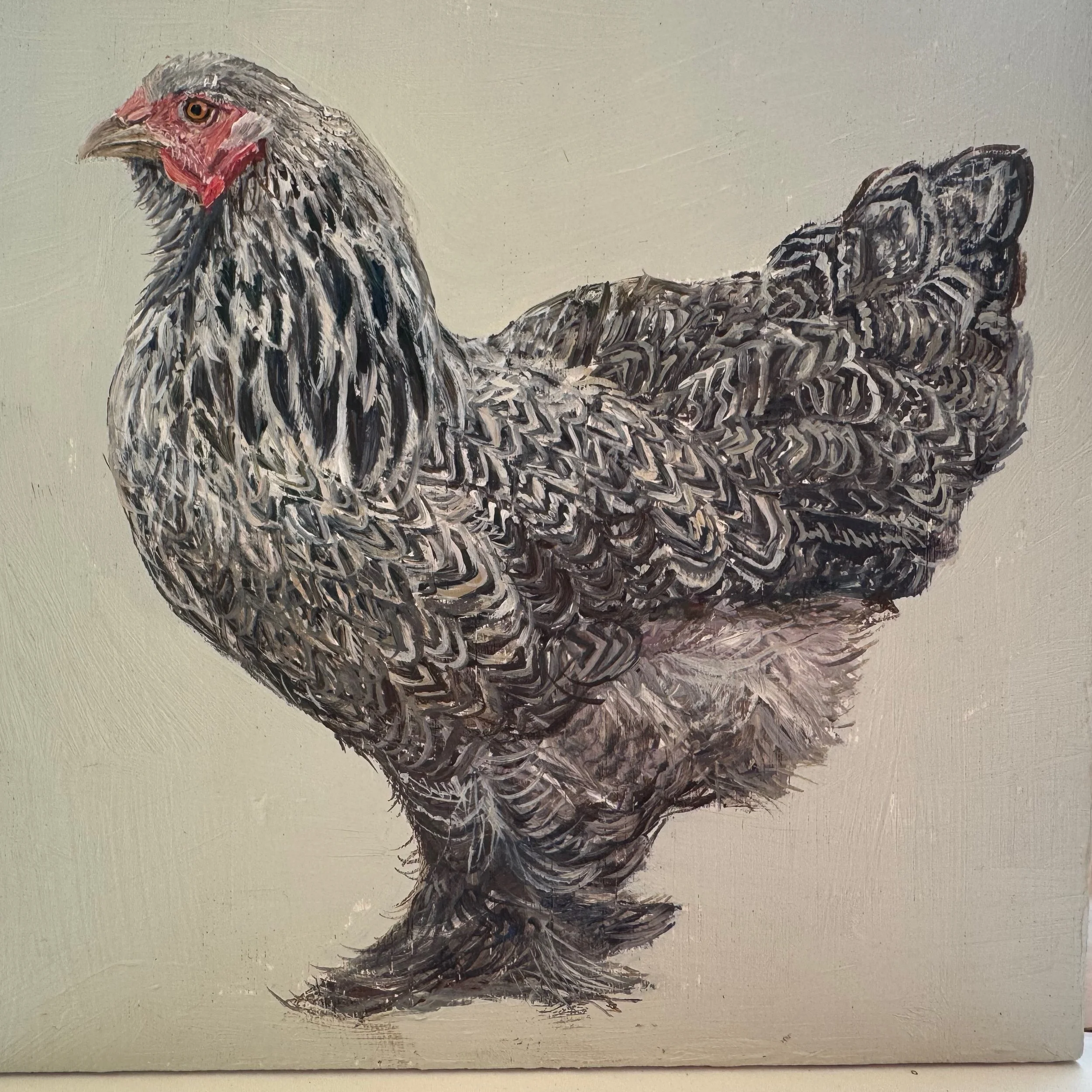 Painting #135, Brahma Chicken, 35cm x 35cm, Oil on Gesso Canvas, Framed (SOLD)