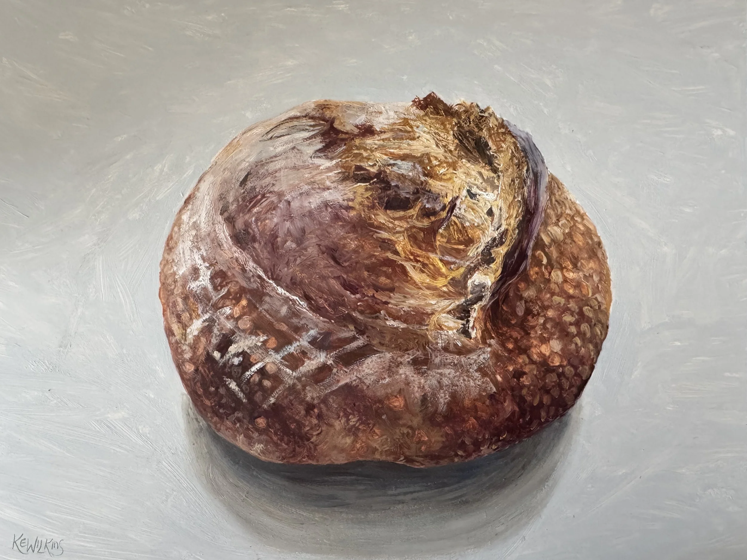 Painting #59, Floury Loaf, 40cm x 30cm, unframed on 2.5cm deep board (SALE £150)